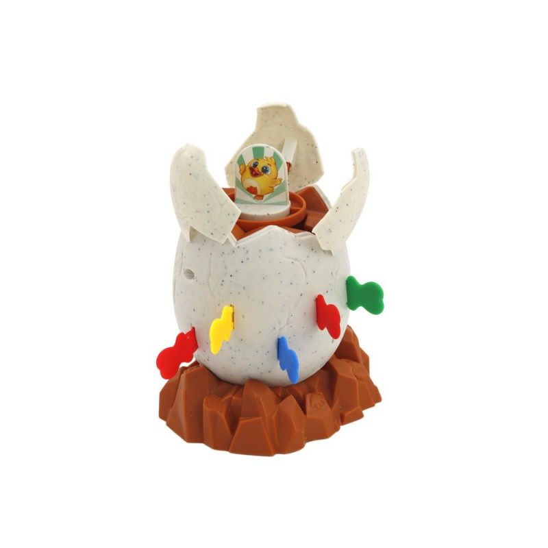Jajko stawiamy na dołączonej brązowej podstawce, następnie należy umieścić kurczaka w jajku. W tym momencie możemy zacząć zabawę i delikatnie wsuwać patyczki wokół niego. To pozornie prosty proces, ale teraz przygotuj się na najzabawniejszy moment - gdy gracz umieści patyczek we właściwym miejscu, kurczak nagle wyskakuje z jajka! To chwila, która rozbawi każdego i wywoła fale śmiechu.