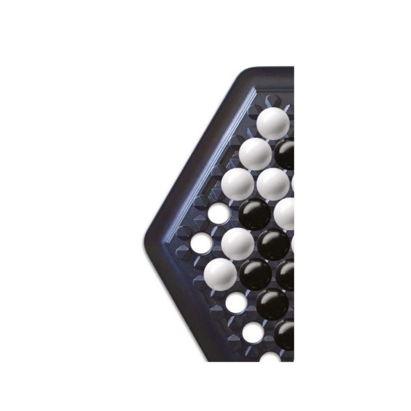 Dwoje przeciwników zasiada naprzeciwko siebie, by wziąć udział w angażującym pojedynku umysłów. Na sześciokątnej planszy znajdują się czarne i białe kule każdy z graczy posługuje się jednym z kolorów. Aby wygrać, należy wepchnąć 6 kul przeciwnika do rynienki biegnącej wzdłuż krawędzi. Obserwuj, planuj... i rozważaj możliwe posunięcia przy każdym kolejnym ruchu!
