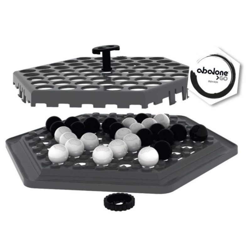 Abalone GO to specjalna, kompaktowa wersja popularnej dwuosobowej gry logicznej w pełni dostosowana do tego, żeby zabrać ją ze sobą, gdzie tylko zechcesz! Elementy zostały pomniejszone, a praktyczna nakładka na planszę pozwala na zapisanie rozgrywki i przeniesienie zawartości bez ryzyka jej przemieszczenia.