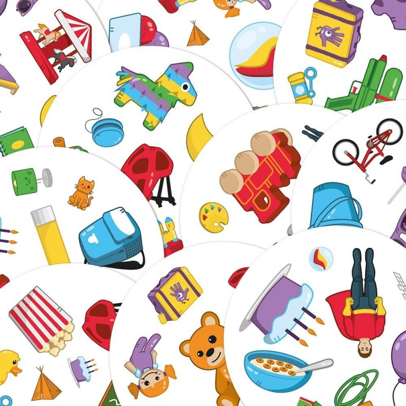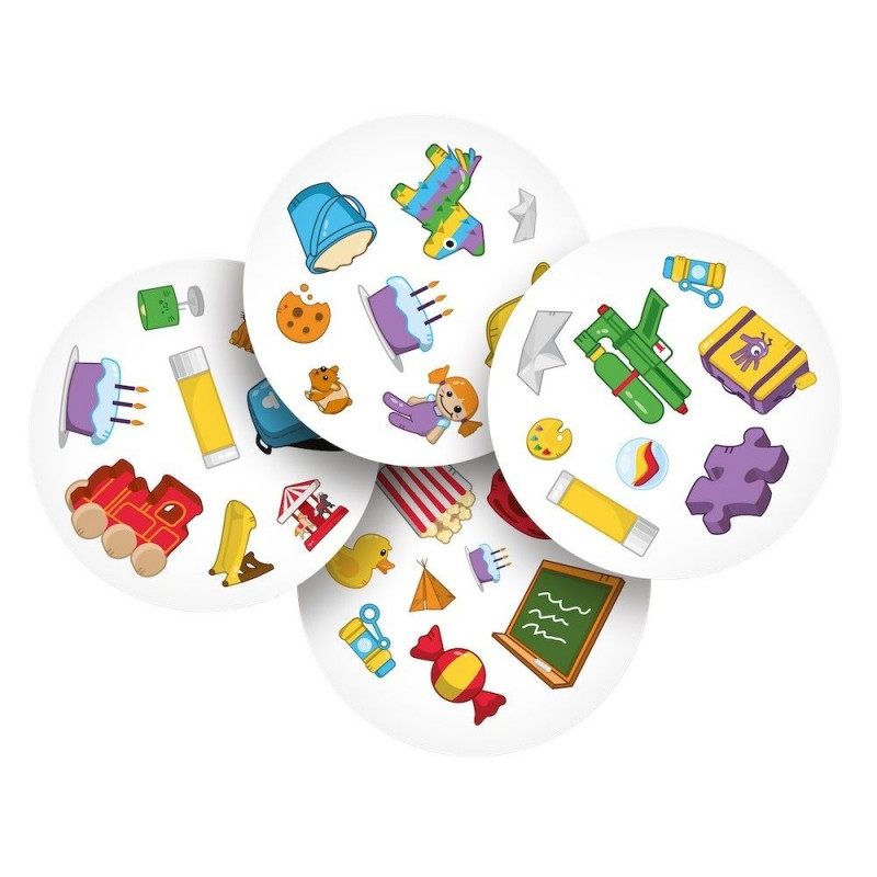 Dobble Kids to gra wspierająca trening spostrzegawczości i szybkości reakcji, w pełni dostosowana do potrzeb najmłodszych. Zestaw zawiera 55 kart z symbolami przedstawiającymi przedmioty i zabawki, którymi dzieci bawią się każdego dnia. Miś, plecak, piłka, rower, lalka proste obrazki łatwiej nazwać, dzięki czemu możemy zaprosić do zabawy dzieci od 4. roku życia.