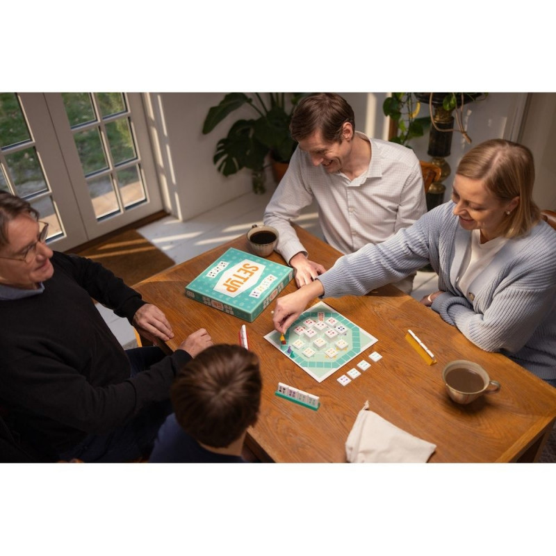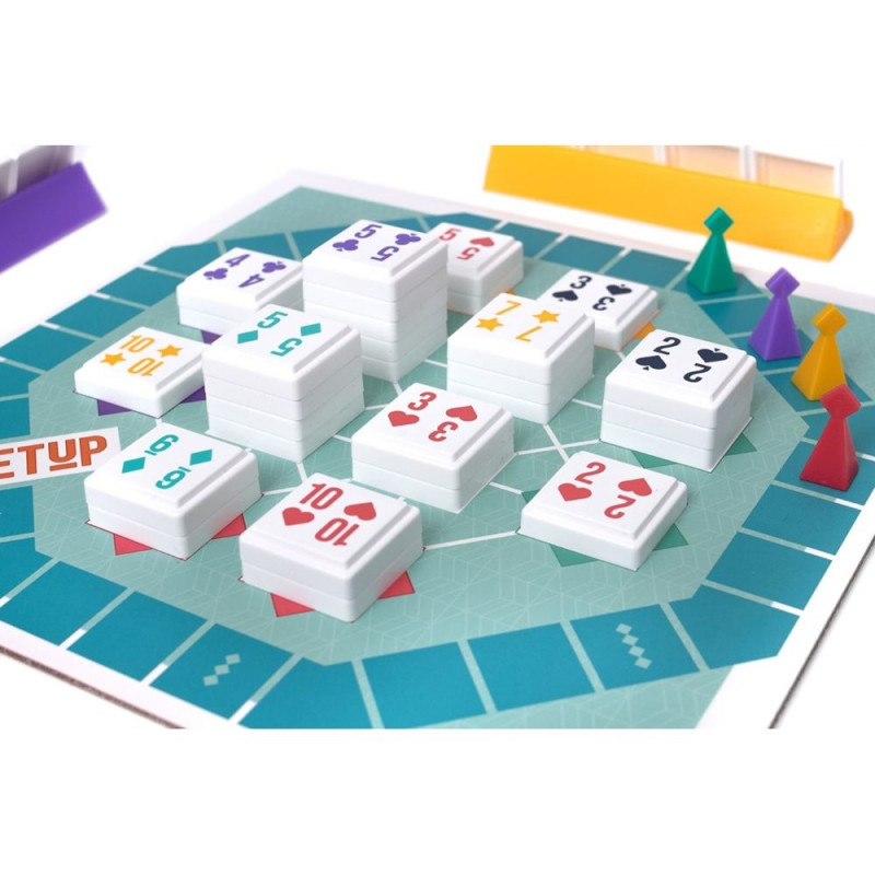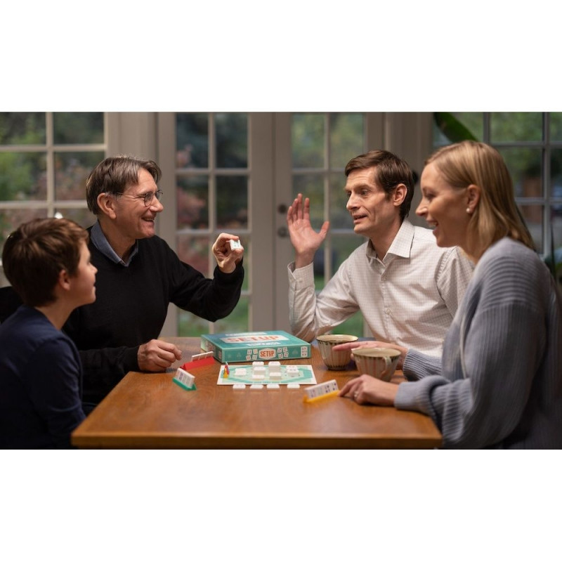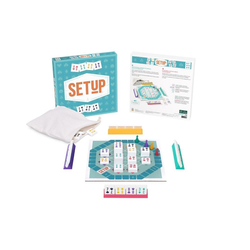 SETUP to prosta pod względem zasad i niezwykle przyjemna gra dla całej rodziny. Podczas zabawy uczestnicy tworzą na planszy zestawy karcianych płytek. Im więcej płytek znajduje się w Twoich zestawach, tym więcej punktów zdobywasz i tym dalej przesuwasz swój pionek na torze punktacji. Zwycięża osoba, której pionek jako pierwszy dotrze na linię mety!