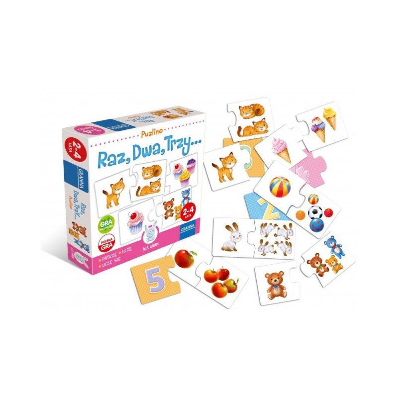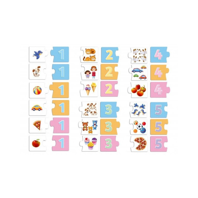 Kolorowa układanka, która najmłodsze dzieci uczy liczyć. W grze występuje 12 par w różnych kategoriach: zwierzątka, jedzenie i zabawki.