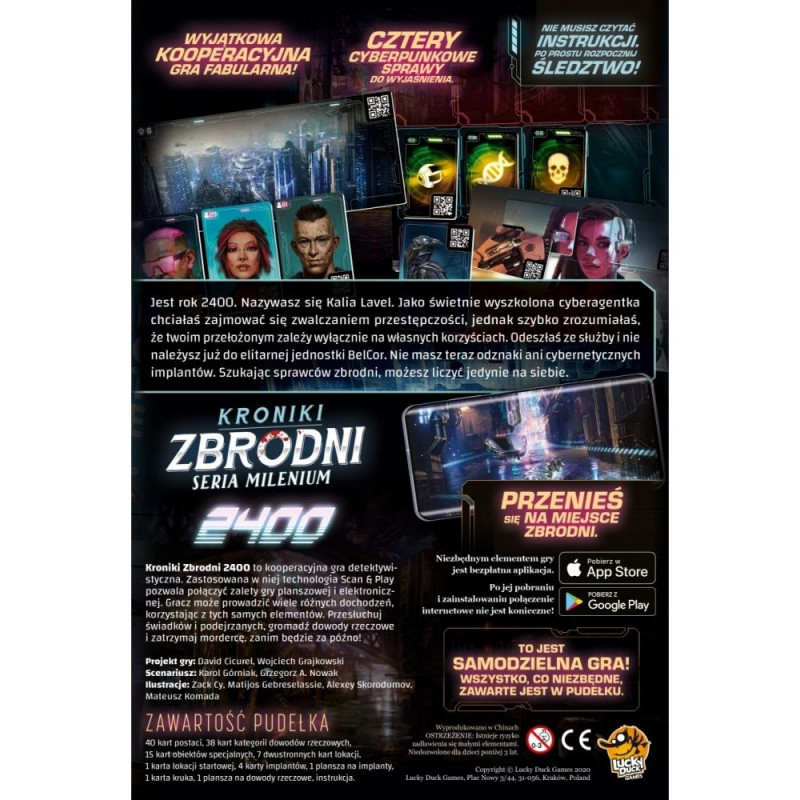 Kroniki Zbrodni: 2400 to niezależna, kooperacyjna gra detektywistyczna. Zastosowana w niej technologia Scan & Play pozwala połączyć zalety gry planszowej i elektronicznej. Dzięki wykorzystaniu kodów QR gracz może prowadzić wiele różnych dochodzeń, korzystając z tych samych elementów.