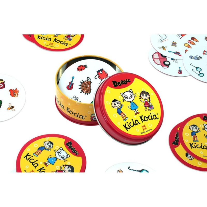 - Dzięki nawiązaniu do popularnej serii, a także mniejszej liczbie symboli na kartach, Dobble Kicia Kocia są w pełni dopasowane do potrzeb najmłodszych graczy.