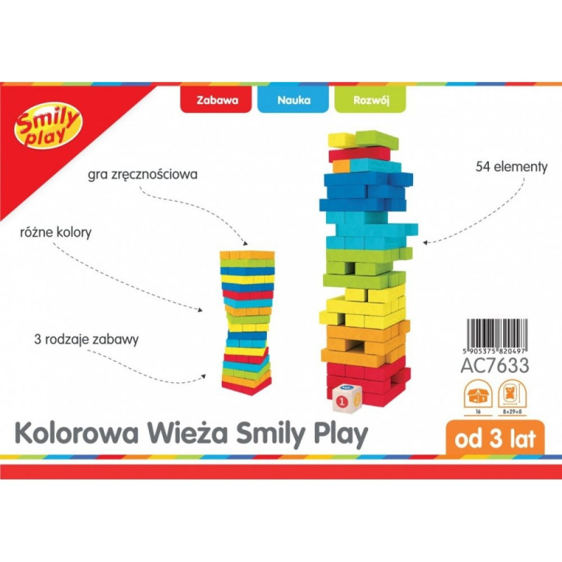 Gra zręcznościowa zawiera 54 elementy w 6 kolorach. Uczy logicznego myślenia, kolorów, kolejności, liczenia.