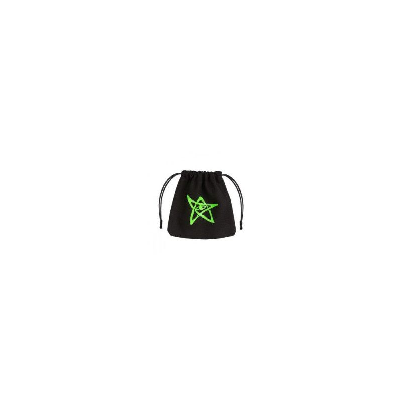 The Call of Cthulhu dice bag is made from thick black cotton with green patterns and measures approximately 11 x 12 cm. It features a protective elder sign and is secured with two drawstrings.Warning: Last items in stock!