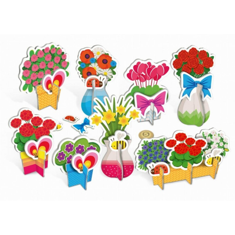 Masz głowę pełną pomysłów i marzysz o własnej kwiaciarni? Z zestawem Flora to możliwe! Stwórz swoje stoisko z pudełka, ułóż wyjątkowe kompozycje kwiatowe i przyciągnij tłumy klientów do swojej kwitnącej kwiaciarni. W zestawie znajdziesz tekturowe kwiaty do samodzielnego składania, naklejki do dekoracji stoiska oraz tekturowe pieniądze, którymi mogą płacić Twoi klienci wszystko, czego potrzeba, by stworzyć miejsce pełne koloru i radości.