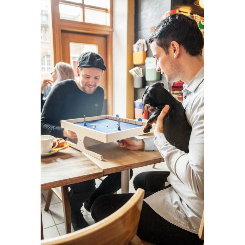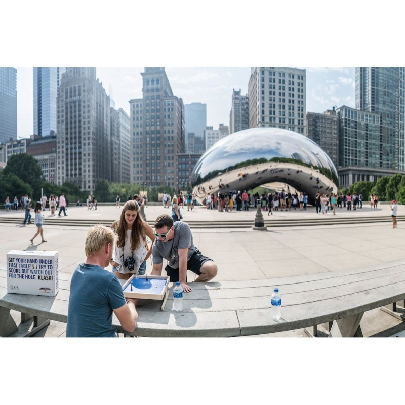 KLASK to wyjątkowa, ekscytująca i jedyna w swoim rodzaju gra z użyciem magnesów. Podczas zabawy mamy jeden cel: umieścić kulkę w bramce przeciwnika! Każdy z graczy dysponuje własnym młoteczkiem, którym steruje spod planszy za pomocą specjalnego magnesu. W ten sposób przepychamy kulkę aż do zdobycia punktu. Ale uwaga! Na stole znajdują się też pułapki w postaci białych magnesów - jeśli 2 lub 3 przyczepią się do Twojego młoteczka, przeciwnik zdobędzie cenny punkt!