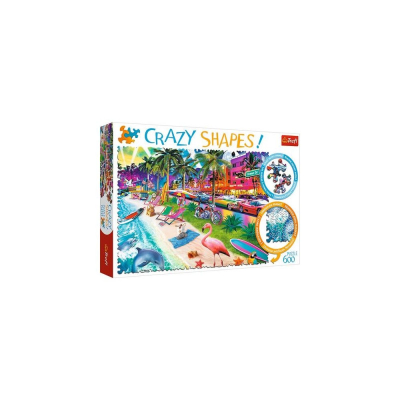 Crazy Shapes is the world’s craziest series of puzzles in which:<br>- puzzle pieces have crazy, original shapes<br>- there are no straight lines<br>- the picture edge is wacky and irregularTrefl Miami Beach. Number of puzzle pieces: 600 pc(s). Genre: Landscape, Recommended age (min): 10 yr(s). Width: 683 mm