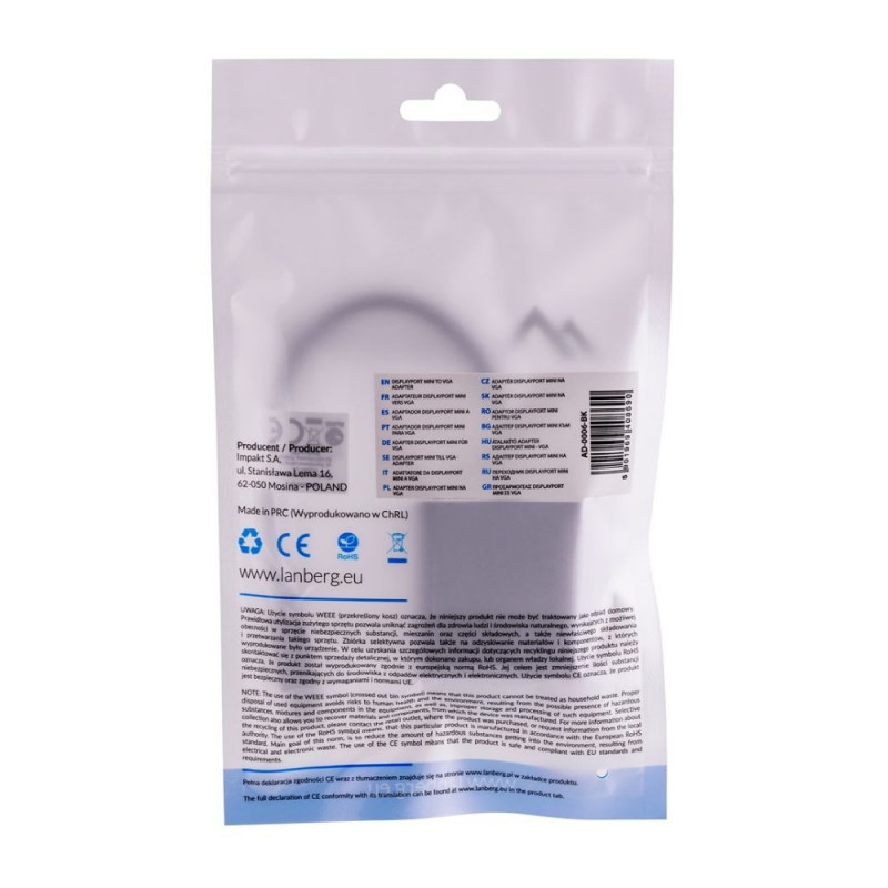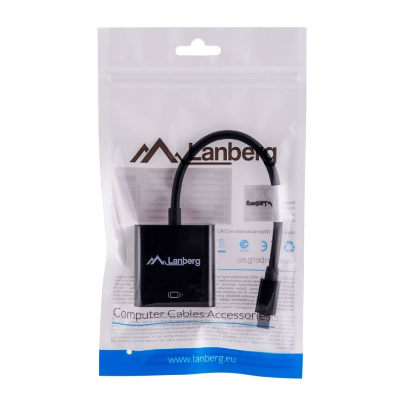 Lanberg AD-0006-BK video cable adapter 0.2 m VGA (D-Sub) Mini DisplayPort Black