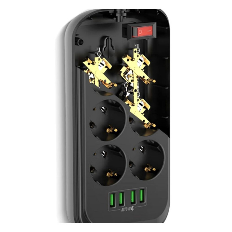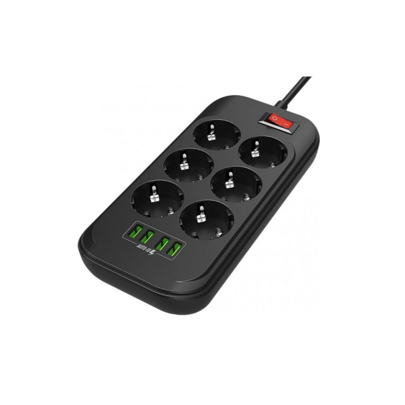 Eritunnused | Multiple simultaneous charging of several devices; Powerful USB charging; Auto detection of connected USB device type; General shutdown button; Protective outlet shutters from children; Heat-resistant plastic housing; Non-sliding surfac |
