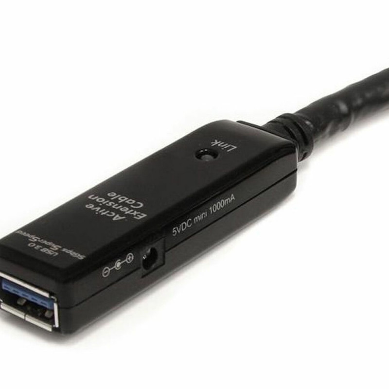 The Startech USB3AAEXT10M cable is an active USB extension cable designed to extend the connection distance between a computer and USB 3.2 Gen 1 devices up to 10 meters. This cable features a male USB Type-A connector and a female USB Type-A connector, allowing it to overcome the usual length limitations of standard USB cables thanks to its integrated bus-powered active circuit, which ensures optimal performance throughout the extension. Made of black PVC with nickel-plated contacts, it guarantees a reliable connection and wear resistance, maintaining transfer integrity. It supports data transfer speeds of up to 5 Gbit/s, compatible with USB 3.2 Gen 1 (3.1 Gen 1), enabling fast file syncing and transmission without quality loss. Additionally, this model allows chaining up to two cables to extend the connection up to 20 meters and can be powered via an adapter if the USB device requires extra power, preventing issues caused by insufficient power supply. Its standard USB connectors ensure compatibility with a wide range of peripherals, keeping installation simple and tidy even in professional or home environments requiring connection extension. The 10-meter active USB cable USB3AAEXT10M offers a robust and efficient technical solution to extend USB device reach while maintaining signal speed and stability in environments demanding flexible distance.