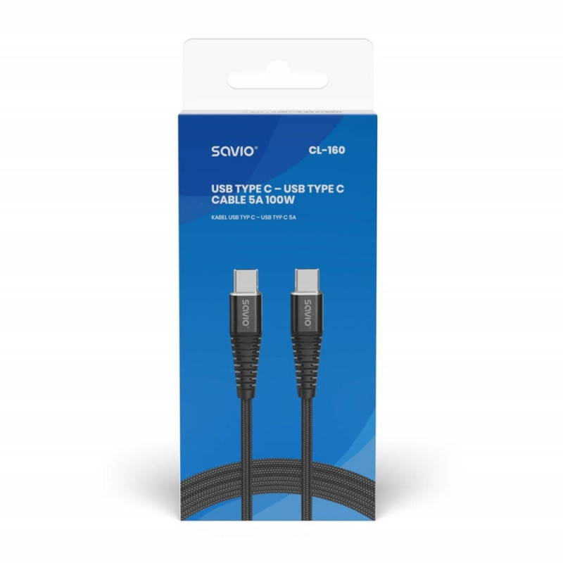 Savio CL-160 USB cable 2 m USB 2.0 USB C - USB C Black