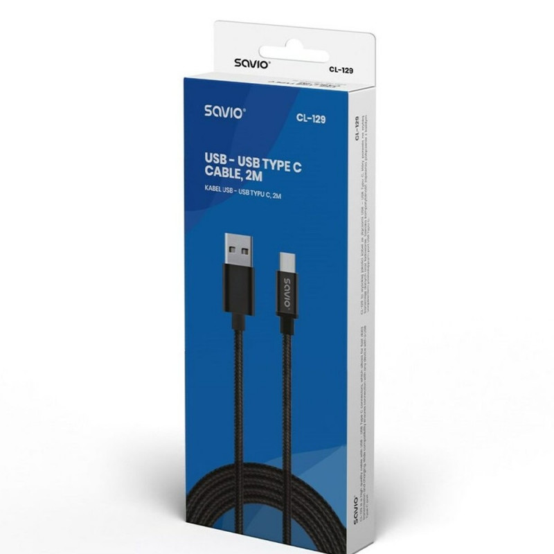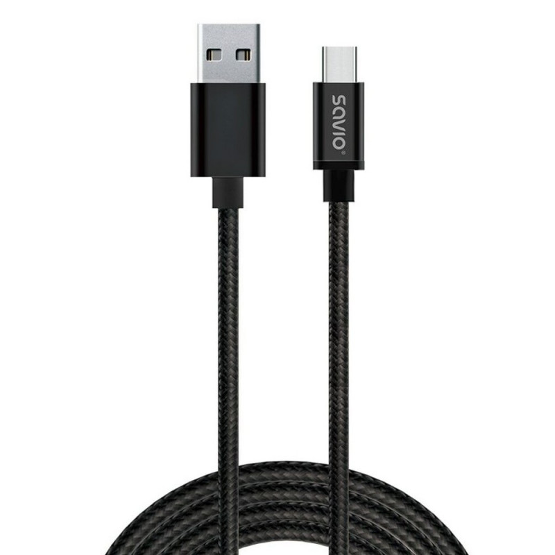 USB A to USB C Cable Savio CL-129 Black 2 m