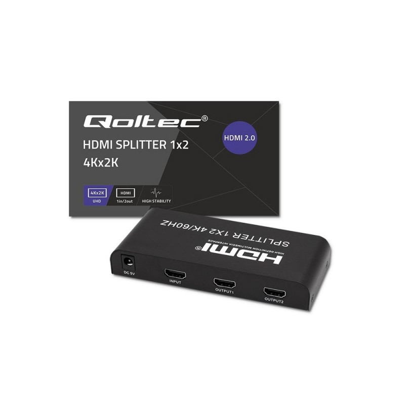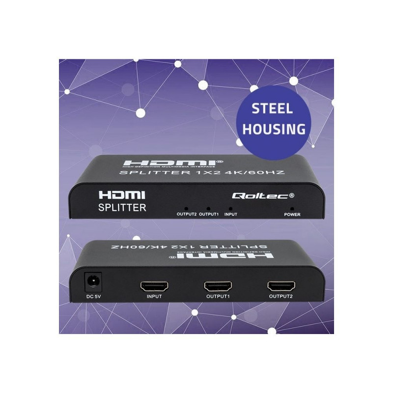 Qoltec 51797 Active HDMI Splitter 2 x HDMI 4K x 2K | 6Gb/s | 60Hz