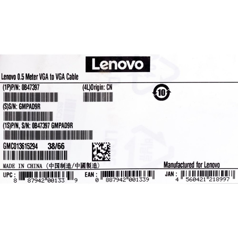 Lenovo 0.5m VGA VGA cable VGA (D-Sub) Black