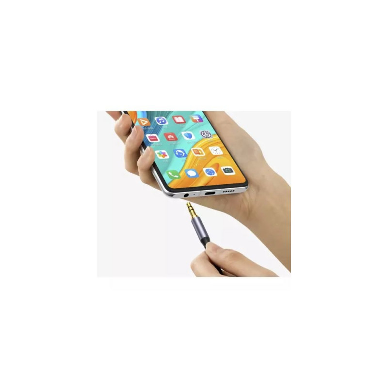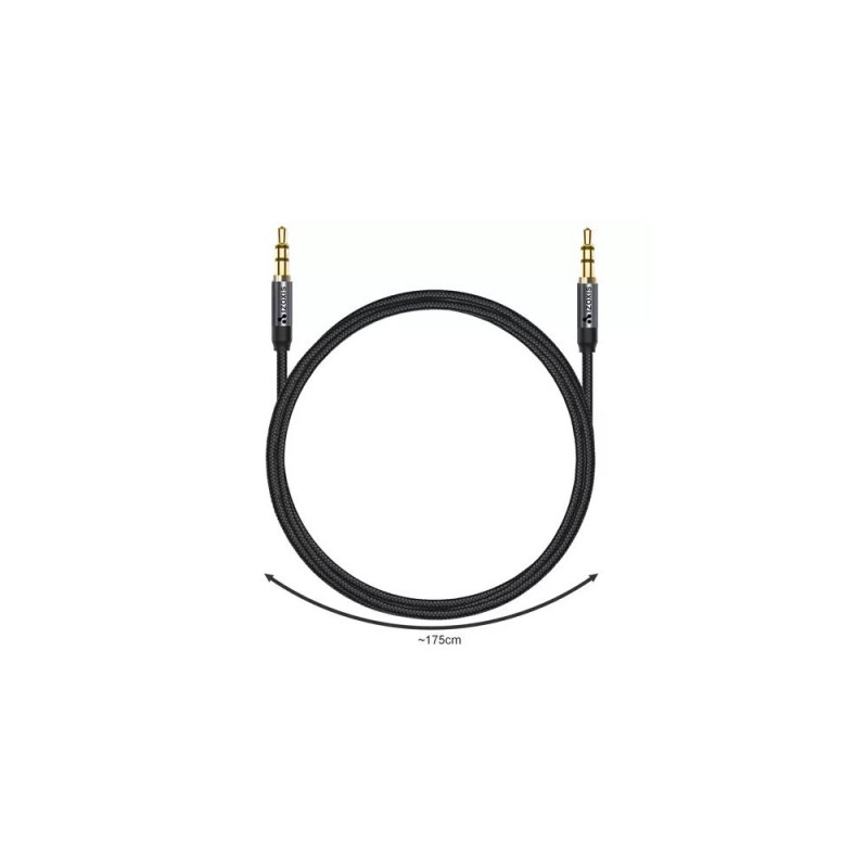 Wykonany z wysokiej jakości miedzi, złota i nylonu. Jest wzmocniony i nieplączący. Posiada solidne metalowe złącza ze złoconymi stykami. Przeznaczony jest do łączenia ze wszystkimi urządzeniami muzycznymi wyposażonymi w wejście AUX, a przekazywany dźwięk jest w jakości Stereo.