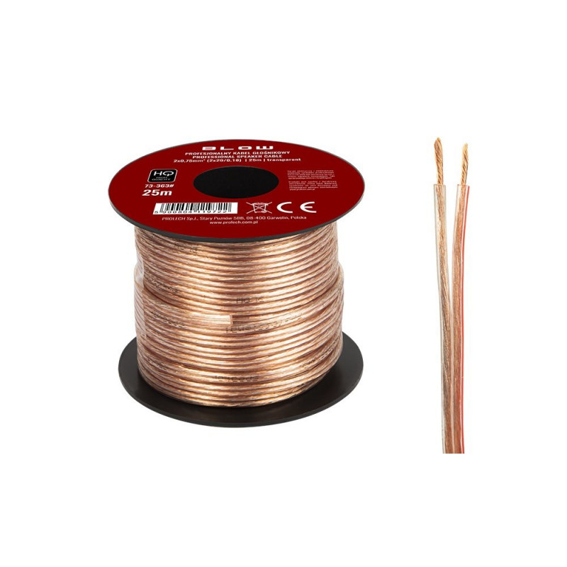 - Długość przewodu: 25m - Rozmiar przewodu: 2x 0,75mm - Rodzaj przewodu: głośnikowy - Przekazywany sygnał: audio - Kolor: przezroczysty