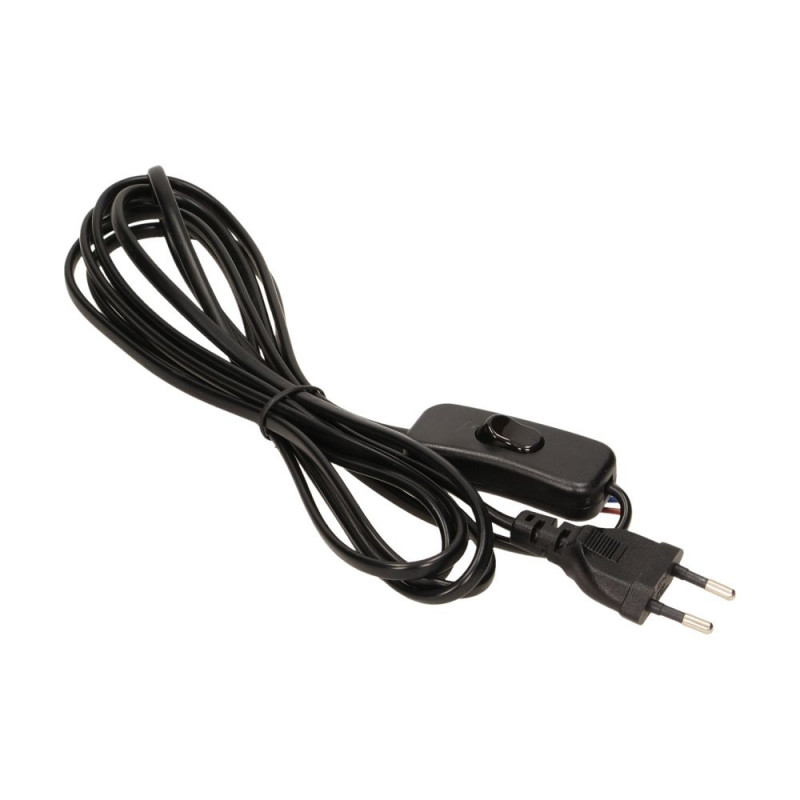 Przewód zasilający z wyłącznikiem on/off i płaską wtyczką, przewód 3m, czarny