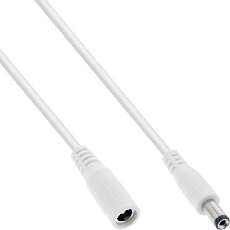 InLine DC extension cable, DC plug/socket 5.5x2.1mm, white, 0.5m