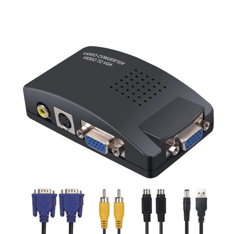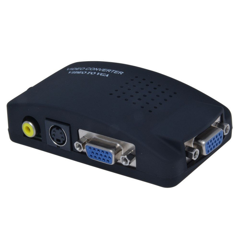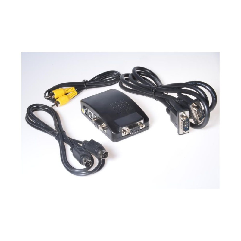 Converter composite signal (CINCH) on VGA signal (DB15F) - output resolution: 800x600, 1024x768, 1280x1024, 1280x720, 1440x900, 1600x900, 1680x1050 - NTSC/PAL auto detection - video output 1x D-Sub 15-pin - video input 1x Mini Din 4-pin - videoWarning: Last items in stock!