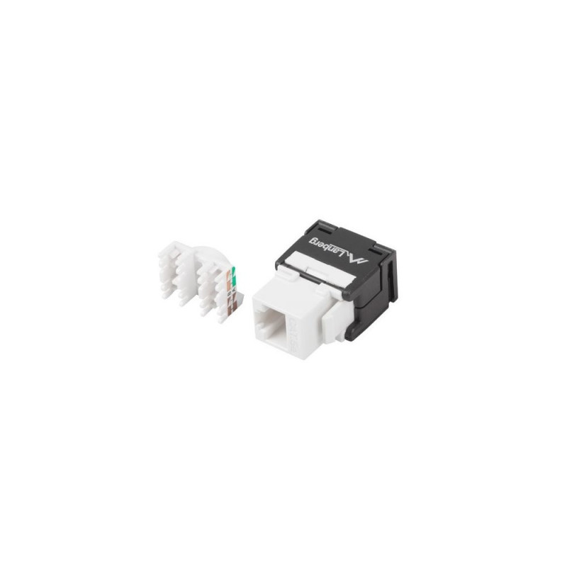 The Lanberg KSU5-2000 is a flat, 22/26 AWG wire size, U/UTP shielded, RJ-45 male and LSA female connector keystone module.