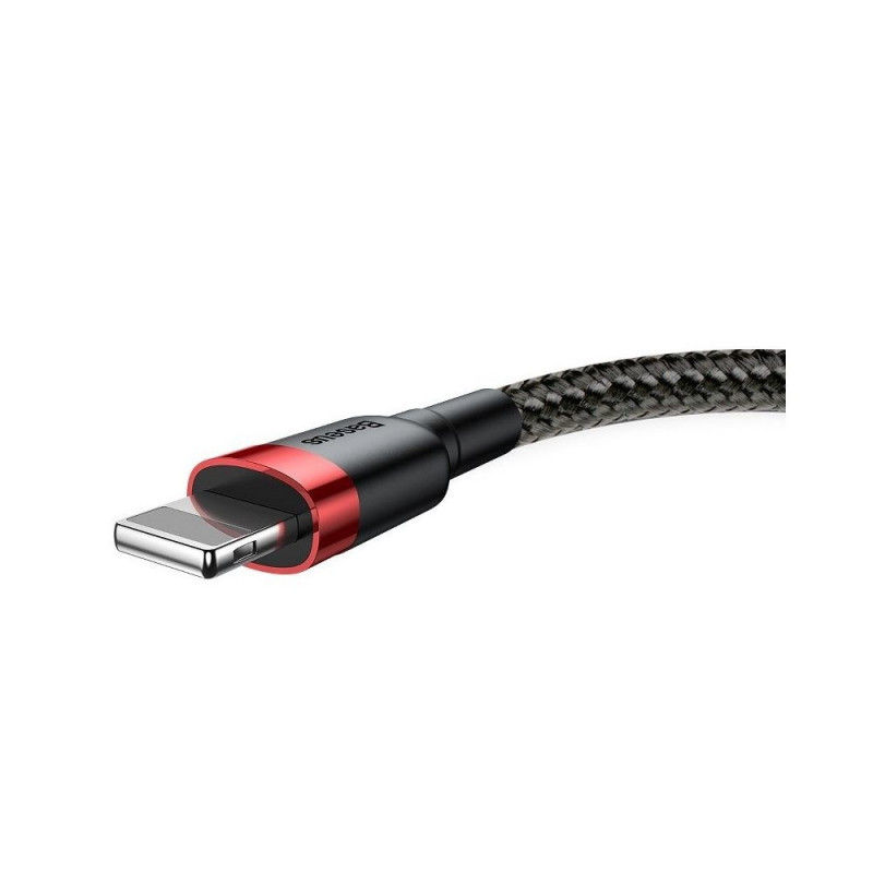 The Baseus Cafule Lightning USB cable is a high-performance charging cable designed for iPhone and iPad devices, featuring durable aluminium and nylon construction.