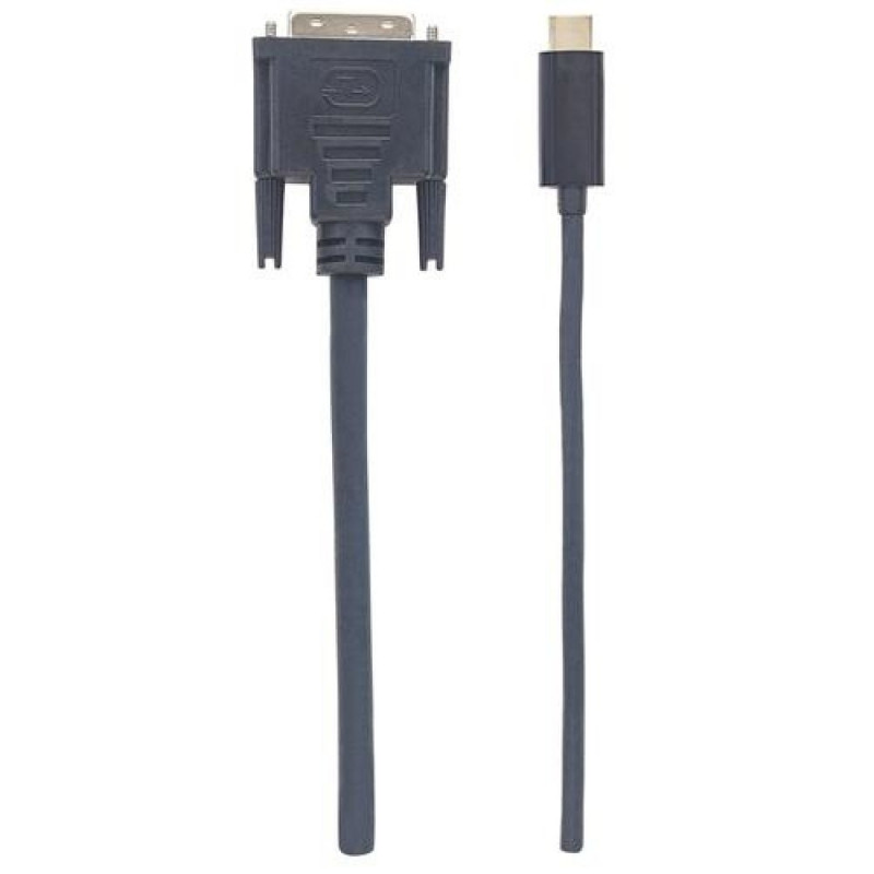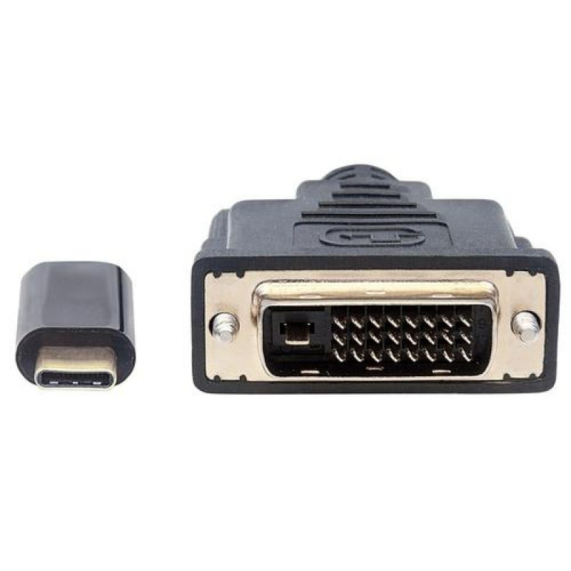 Manhattan USB-C to DVI-D Cable, 1080p@60Hz, 2m, Male to Female, Black, Compatible with DVD-D, Three