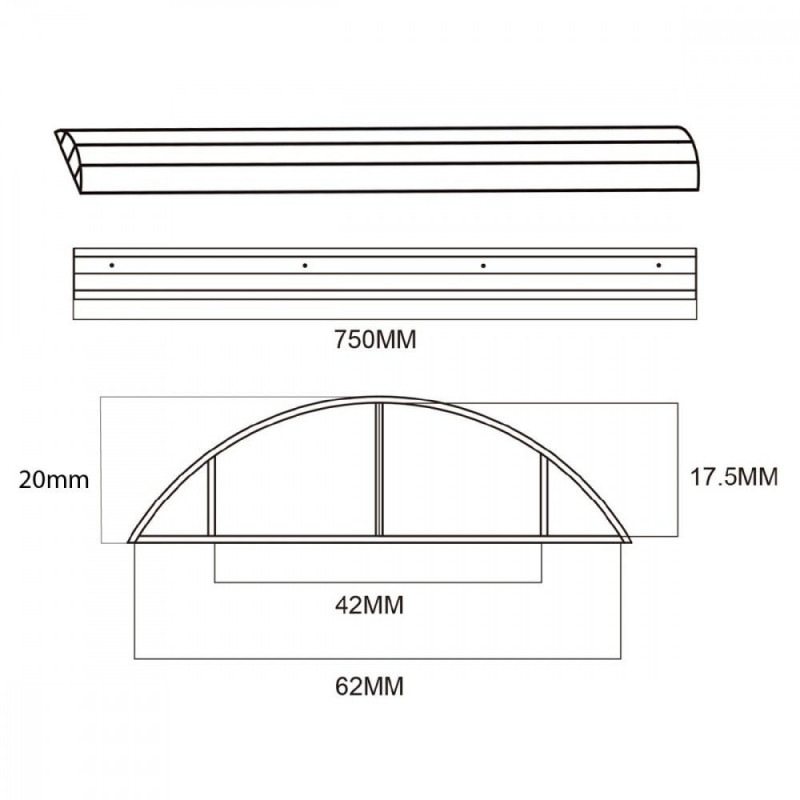 | Dimensions | - Manufacturer: Maclean - Model: MC-814 W - Color: white - Material: aluminum - Section: semicircular - Length: 750 mm - Width: 62 mm - Internal width: 42 mm - Height: 20 mm - Internal height: 17.5 mm - Construction: two-piece - Mounting: self-adhesive + |