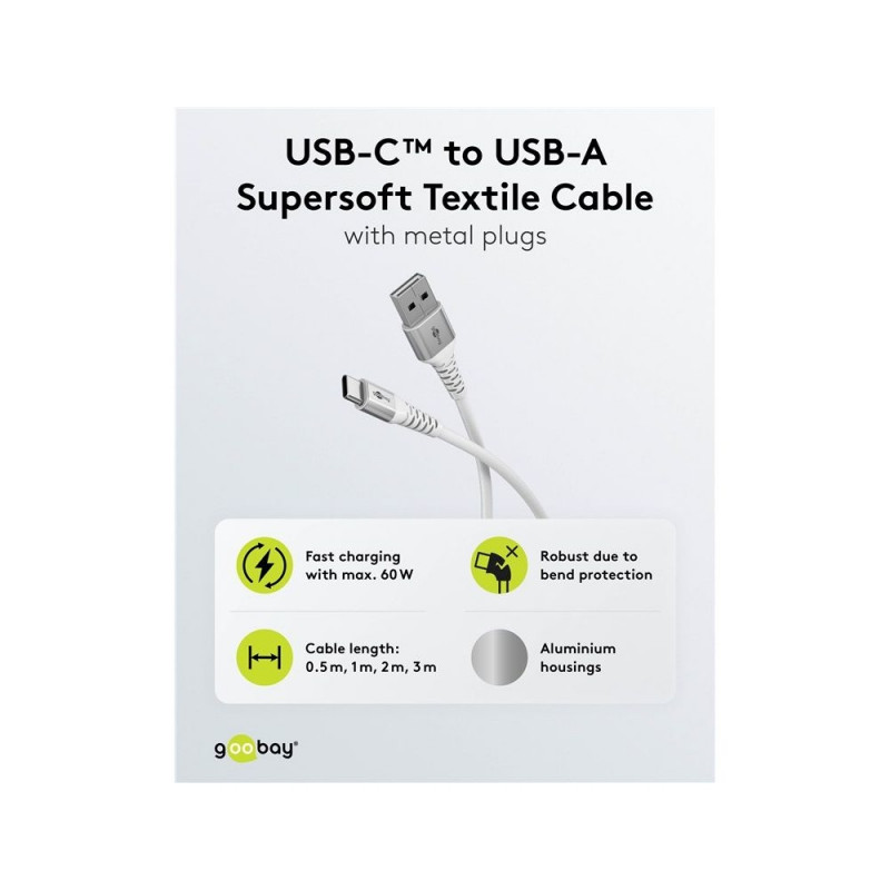 Goobay USB-C to USB-A Supersoft Textile Cable with Metal Plugs | 74530