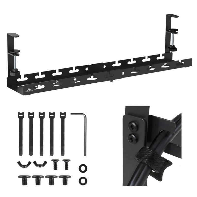 Accessories included | Maclean MC-103 B under-desk cable organizer Velcro cable ties (5 pieces) Mounting accessories Manufacturer's packaging |