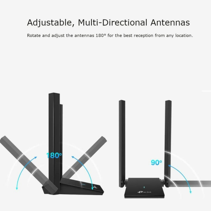 The Archer TX20U Plus from TP-Link is a WiFi adapter designed to provide a stable and fast wireless connection for devices needing to expand or improve their internet connectivity. Featuring an elegant black finish with a durable plastic casing, this adapter stands out for its compatibility with multiple standards thanks to its various USB connection options, including USB 2.0, USB 3.0, and USB 3.2, via a USB-A connector, ensuring versatility with most computers and laptops on the market. Its advanced wireless technology enhances transfer speed and signal stability, ideal for activities like streaming, video calls, and online gaming that require a reliable connection. It also features an LED indicator that simplifies managing and monitoring connection status, adding extra convenience for the user. Included is a clear installation guide that speeds up setup, making it accessible for both less experienced users and professionals seeking a quick solution. Compact and lightweight, its wireless design offers a practical solution without the need for extra cables, balancing functionality and portability. Overall, the Archer TX20U Plus is a suitable choice for those needing to improve or add WiFi connectivity on devices with only a USB port, ensuring a smooth and efficient browsing experience.
