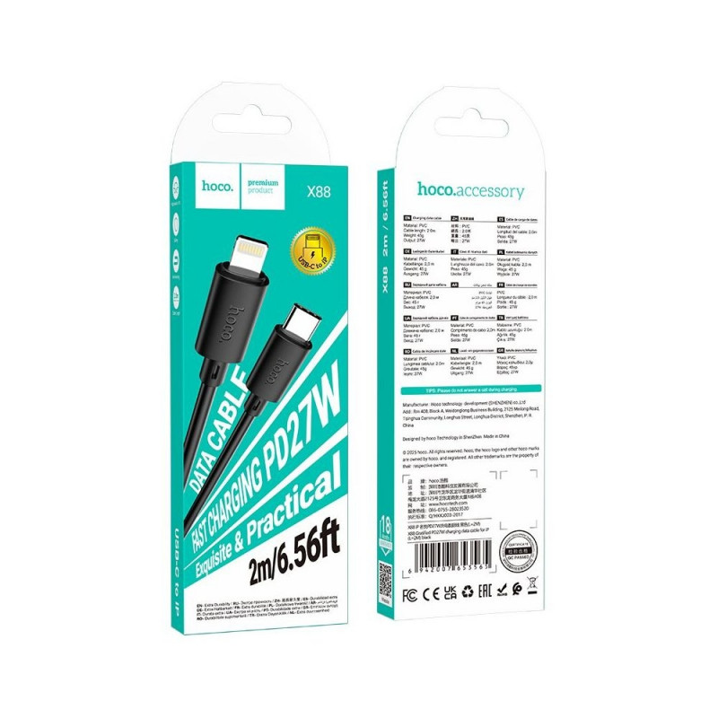 Cable USB C to Lightning Hoco PD 27W 2 m X88 black
