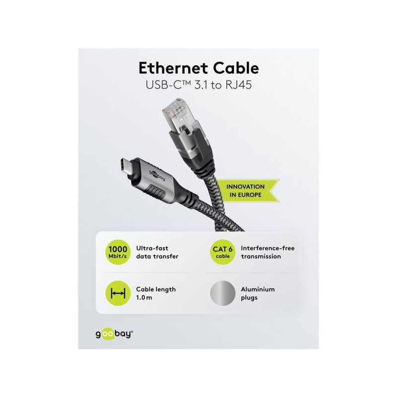 Goobay USB-C™ 3.1 to RJ45 Ethernet Cable, 1 m 1 m