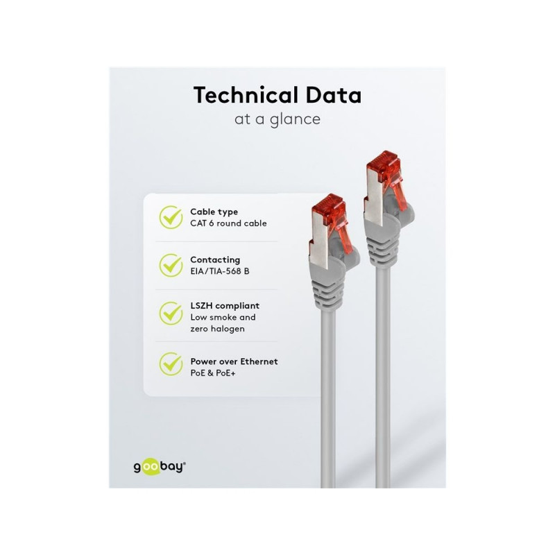 | Description | Our CAT cables transmit signals in top quality at high speed, always guaranteeing a stable connection. High-quality inner conductors, robust cable sheathing and precisely fitting plugs distinguish our portfolio of connection cables and plugs. Goobay alway |