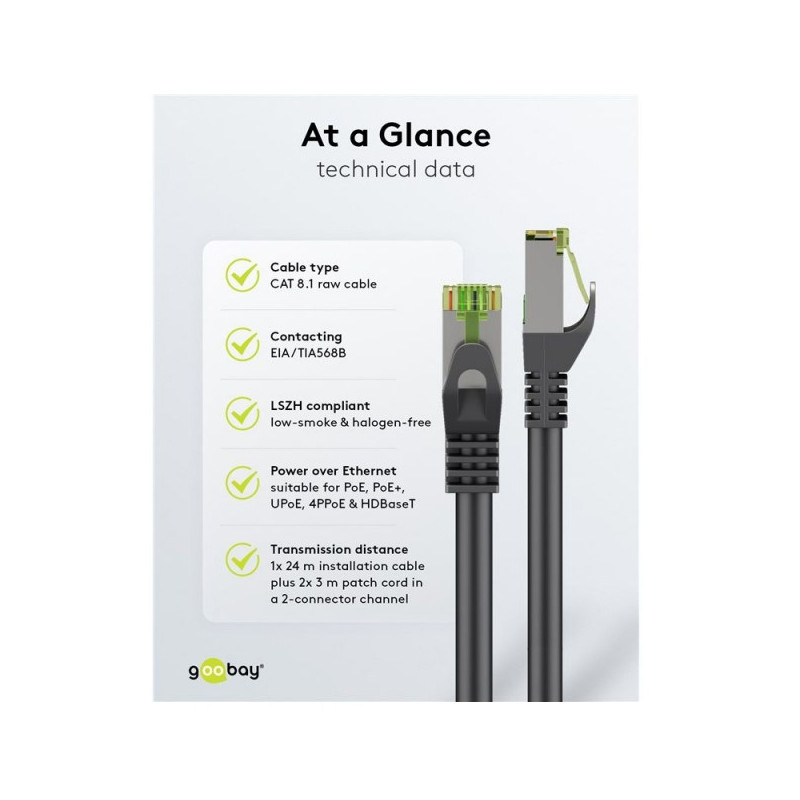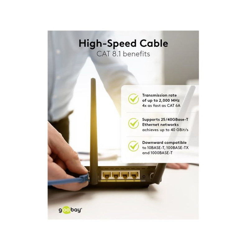 - CAT 8.1 standard, transmission speed up to 2000 MHz