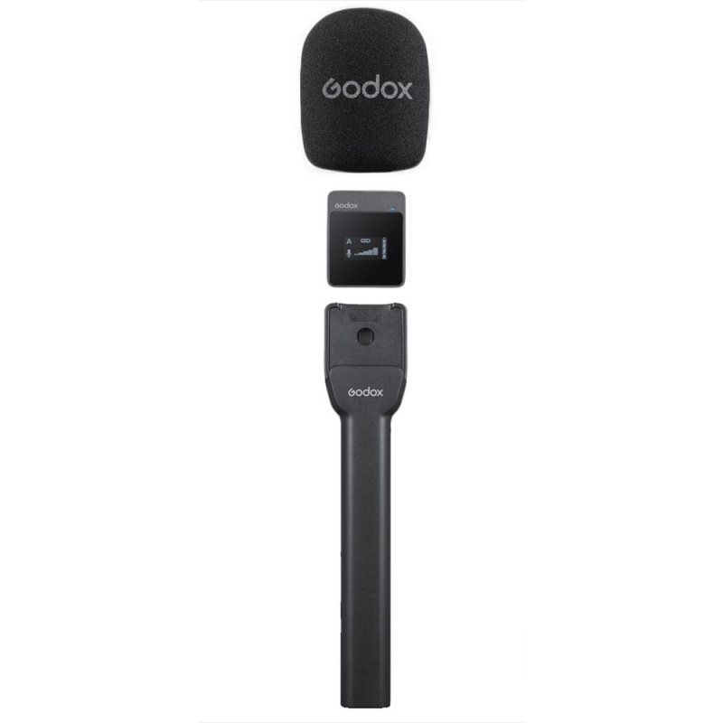 - Transforms Godox clip-on microphones (M1 or M2) into a handheld reporter-style microphone for versatile use.