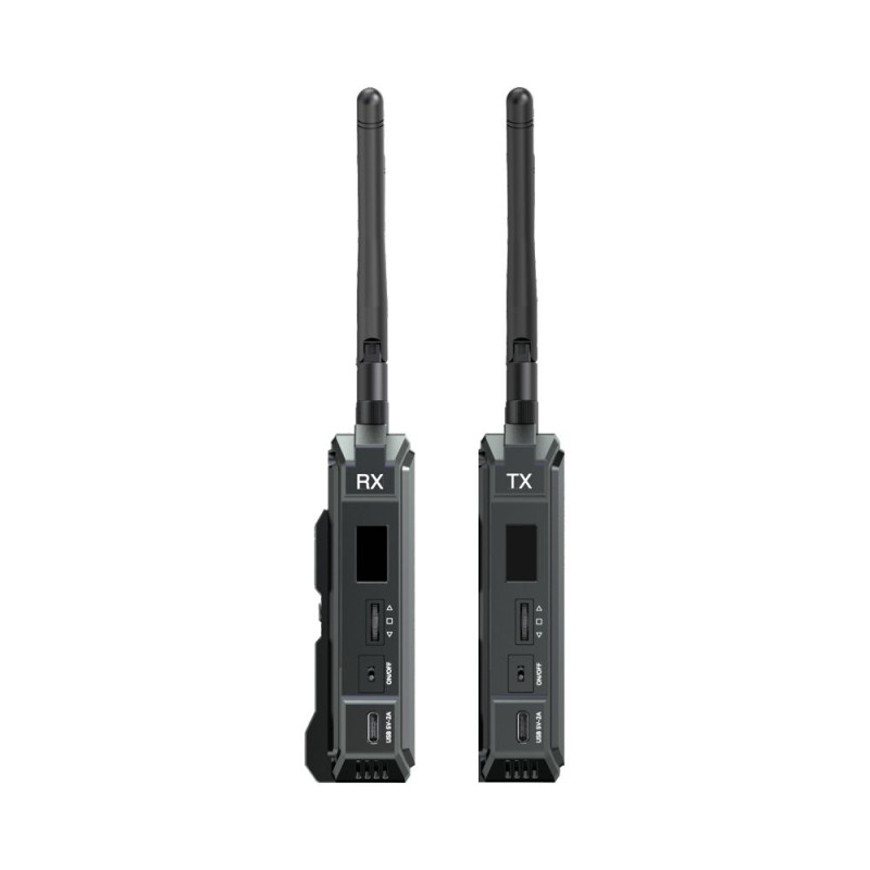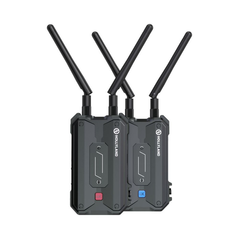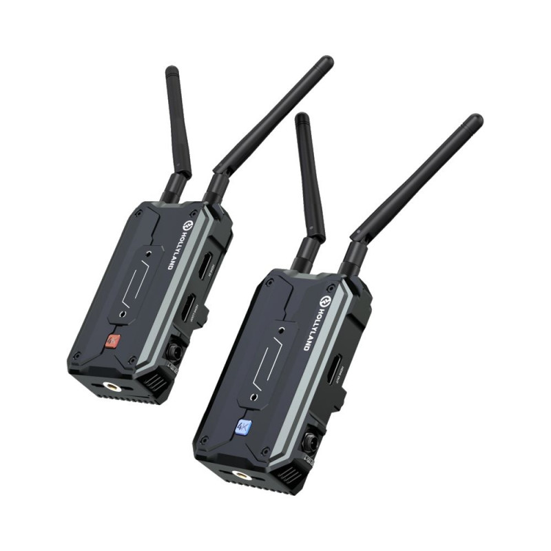 4K30 wireless video transmission to your production using the versatile Pyro H 4K HDMI Wireless Video Transmission System from Hollyland. The system includes a wireless transmitter, a wireless receiver, five antennas, a USB-A to USB-C adapter, and an adjustable shoe adapter mount.