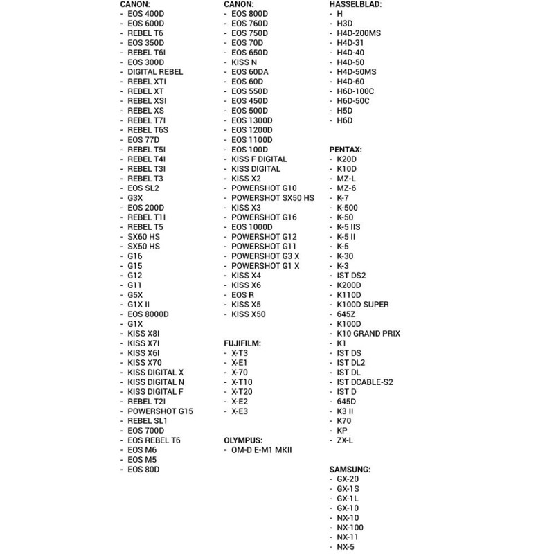 - Canon DSLRs