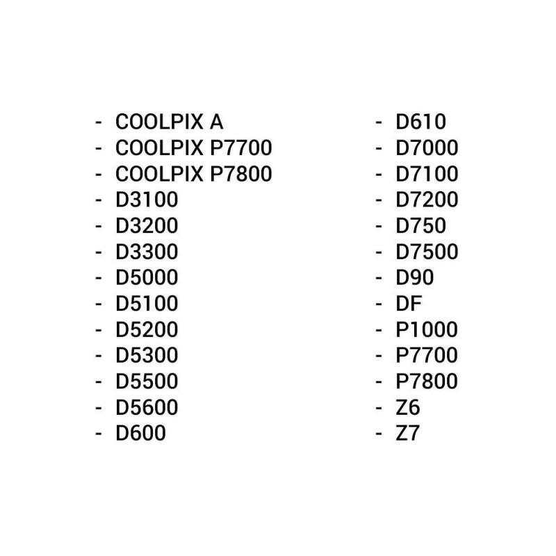 Check the compatible Nikon models listed below. Don’t see your camera? Get in touch and we’ll help you find the right fit.