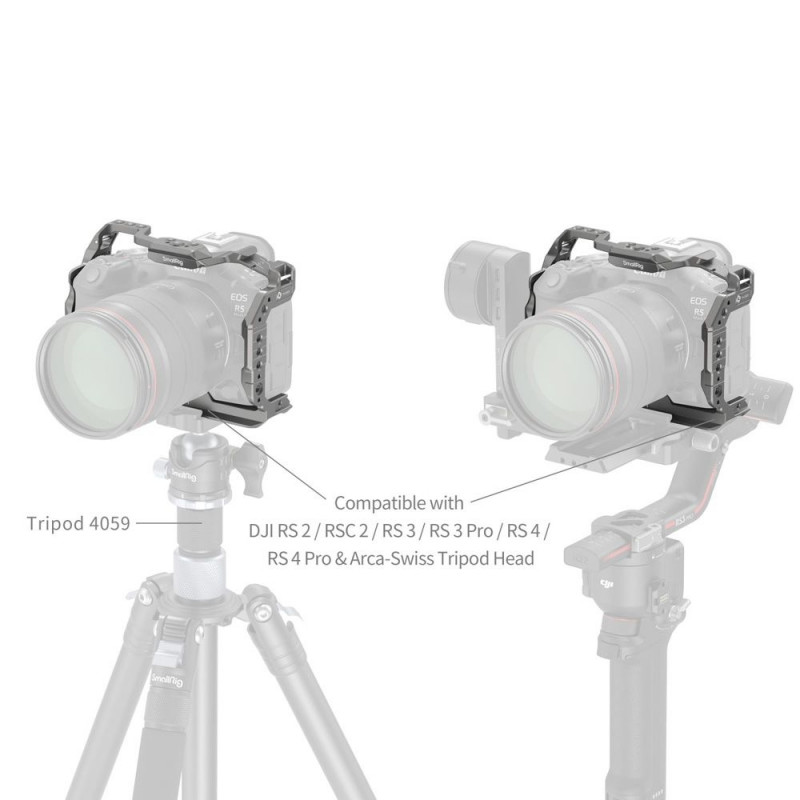 The Arca Swiss quick release base plate allows for direct attachment to Arca type tripods (ID 4060, 4353) and DJI RS 2 / RSC 2 / RS 3 / RS 3 Pro / RS 4 / RS 4 Pro stabilisers, allowing quick transitions between stabiliser, handheld and tripod setups. In addition, the cage has a magnetic dual head key on the bottom for easy assembly and disassembly.,