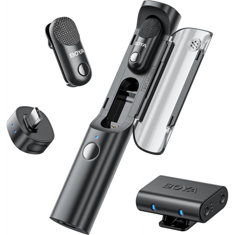 Effortless SetupThe BOYA Magic Wireless System transforms your audio experience with a smart and user-friendly design. Its case-to-mic control technology allows the charging case to directly control the transmitters inside. With one-tap pairing and instant auto-reconnection, it’s truly grab-and-go — no setup hassle.