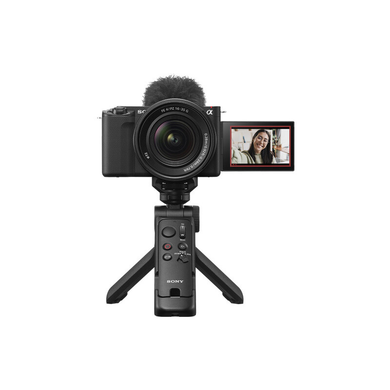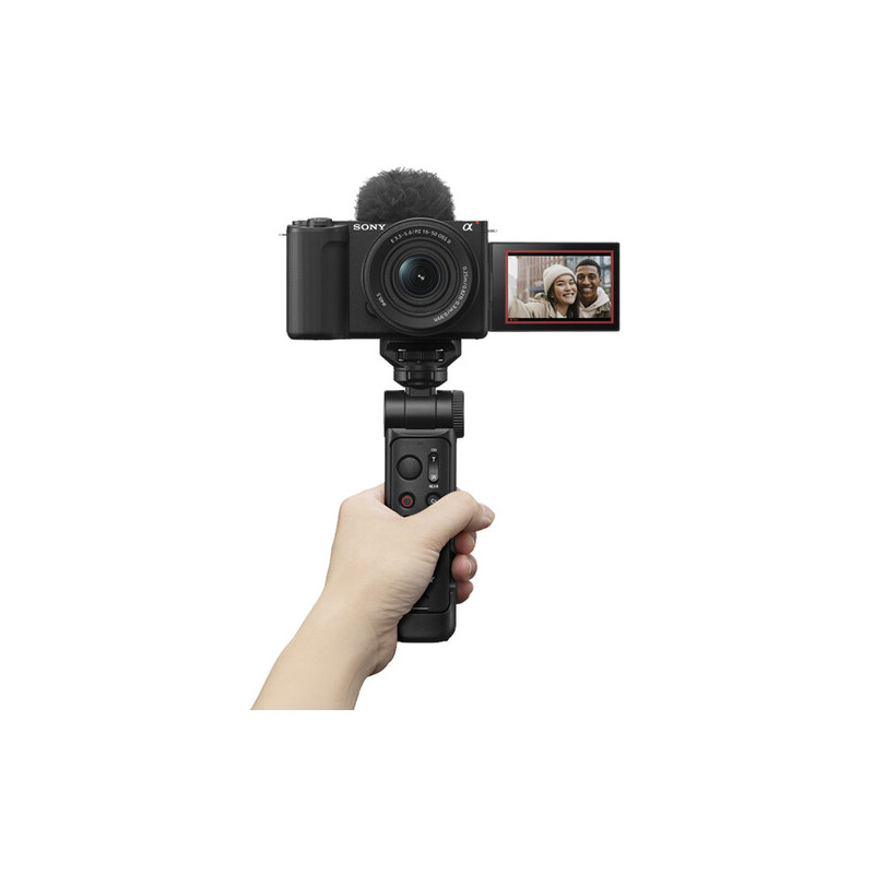 The GP-VPT3 is your perfect travel companion: a three-in-one shooting grip with a detachable wireless remote controller. It’s a shooting grip that easily switches between self-facing and outward-facing shots, a mini tripod for setting up the camera, and a detachable remote commander (also available separately as RMT-VP2) for operating the camera from a distance.