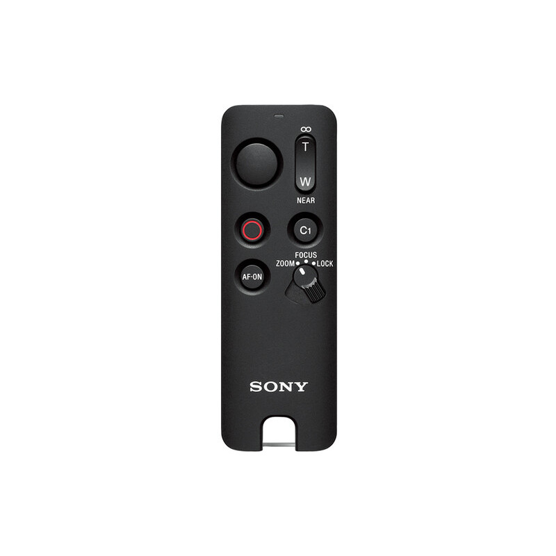 The supplied RMT-VP2 remote commander front panel provides shutter, MOVIE (record), AF-ON, C1 and zoom/focus buttons, letting you shoot video or still images one-handed. If you pre-assign a frequently used function to the camera’s AF-ON or C1 button, pressing the corresponding button on the remote commander provides the same function, allowing you to customise the controls to suit your shooting requirements.