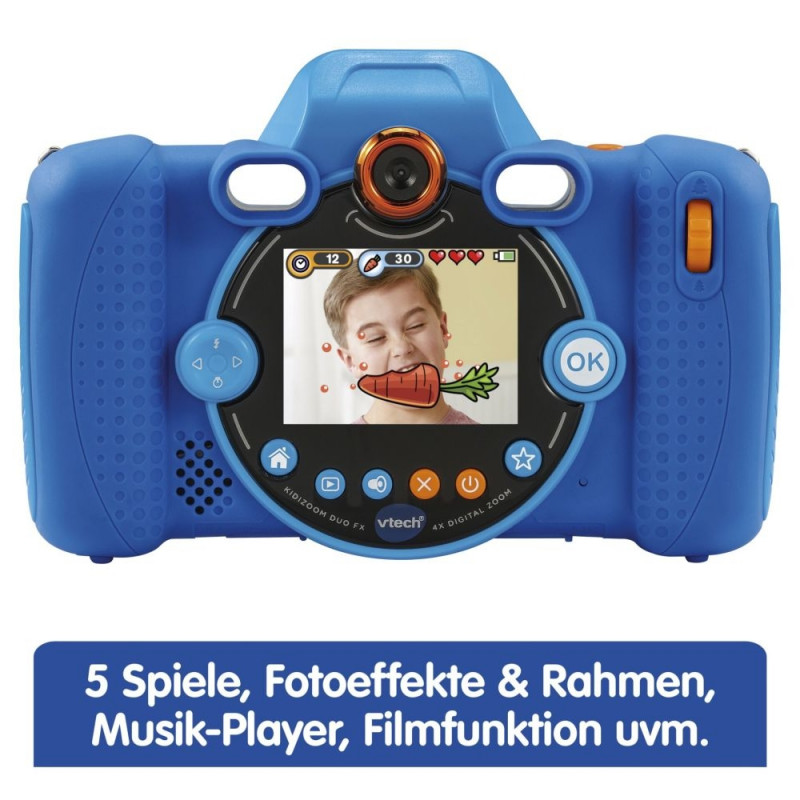 - 5 games, cool photo effects, great frames and stamps, 4x digital zoom, 2.4' LCD colour display, background image with 3D effect, automatic flash, expandable memory and parent control area