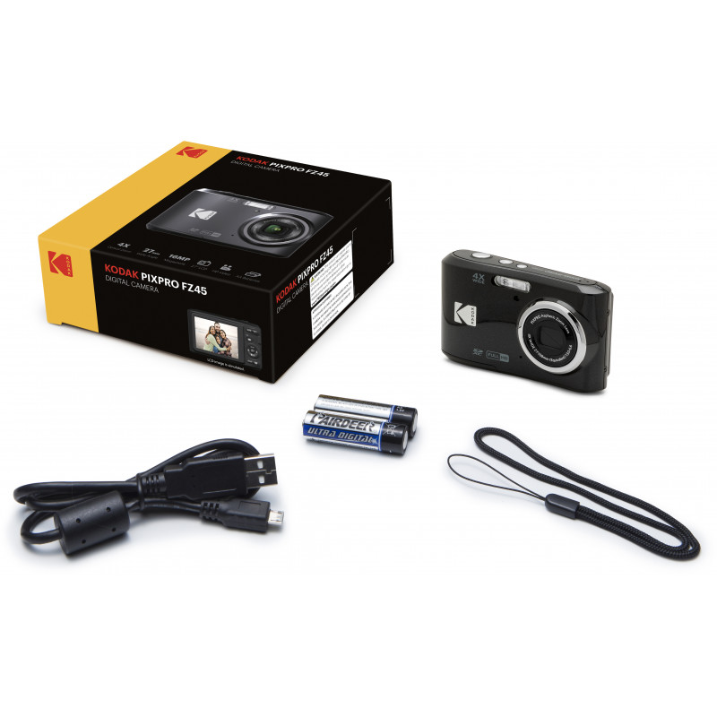 Introducing the FZ45 Friendly Zoom collection from the KODAK PIXPRO family of digital cameras. Compact, intuitive and oh so easy to use, the FZ45 is the perfect starter camera to take anywhere you go. One-touch video, red-eye removal, face detection and convenient AA batteries are just the start.