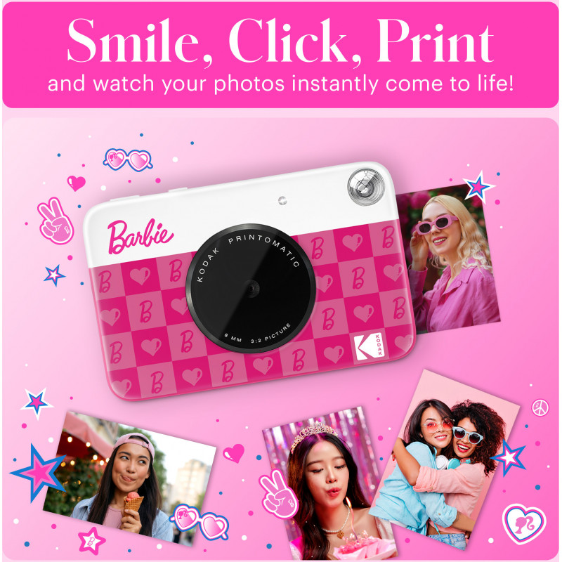 This fabulous, iconic Barbie × Kodak pink camera is your ultimate sidekick for instant fun. Slip this pocket-sized Barbie gem into your bag and snap memories on the go.