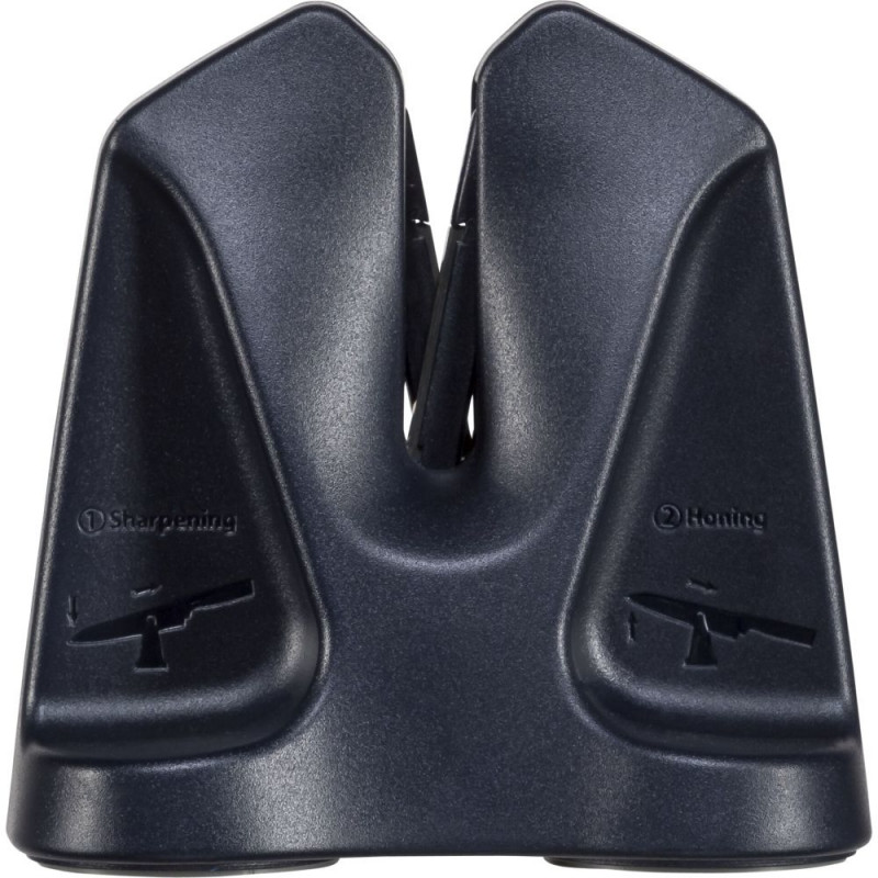 The compact knife sharpener from the French manufacturer Opinel is an easy-to-use tool for sharpening pocket knives or kitchen knives. The angle of the carbide plates of the knife sharpener is self-adjusting, this allows sharpening as well as pulling off the blade to achieve an ideal sharpening. Due to its small size, the Opinel knife sharpener is also ideal for travelling.