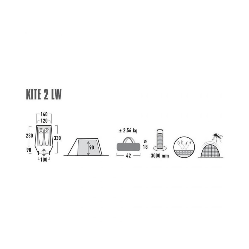 High Peak Kite 2 LW 10343 tent Properties: The spacious High Peak Kite 2 tent is designed for two people. Ventilation holes. The vestibule can be used as a kitchen or utility room. The entrance is equipped with mosquito nets. Laminated seams and watWarning: Last items in stock!