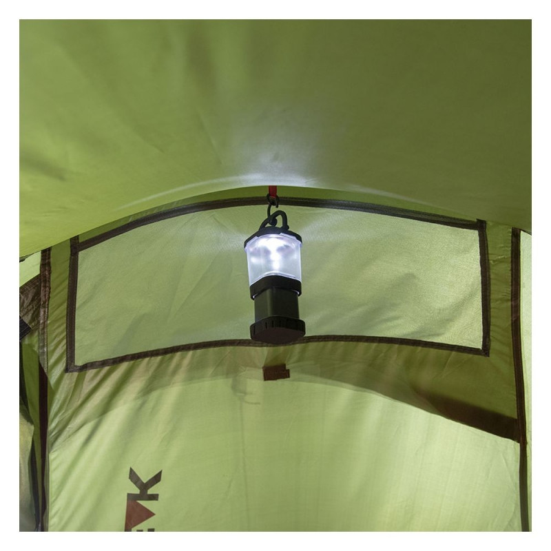 Namiot dla 2 osób marki High Peak sprawdzi się podczas wypraw turystycznych. Jednopowłokowy. Wyprodukowany z trwałej tkaniny. Wejście zabezpieczone specjalną siatką umożliwia ciągłą wentylację i chroni przed owadami. Kieszonka na drobiazgi. Uchwyt na lampkę.